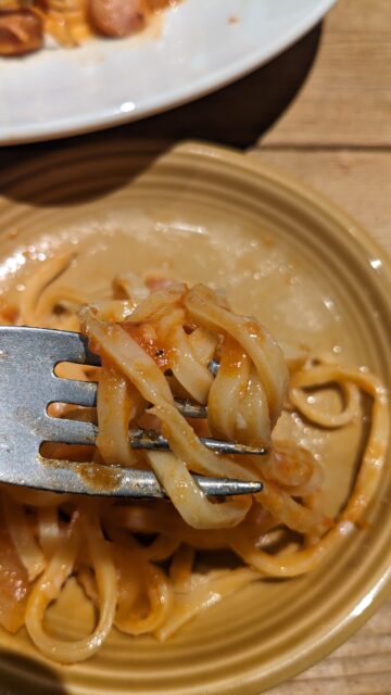 野菜のうまみとソーセージの塩気の強い味でケチャップ感は無いのに