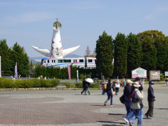 高速道路からは見たことあったのですが、モノレールや木々と比較するとスケール感がよくわかって岡本太郎の言う「べらぼうなもの」という表現に納得感しかないです。