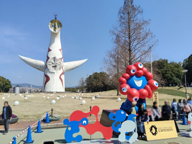 こうやって見るとミャクミャク像と太陽の塔がほぼ同スケールに見えてしまいますが遠近マジック!ほんとは太陽の塔の方が圧倒的に大きいです。これについてはまた別記事でレポート。