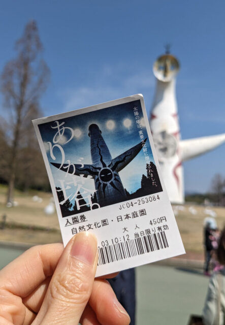 ↓太陽の塔が重要文化財になった記念デザインの入場チケット。