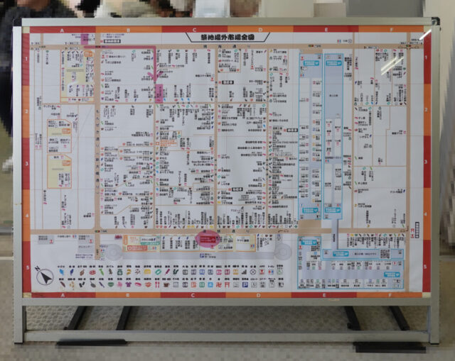 マップはここでももらえますが、築地歩いてるとあちこちで配ってます。我々はなぜか手に取らずここまで来て広さと店舗数に啞然。