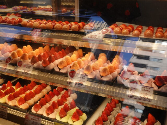 海外の方に日本の果物は人気があるというのは知っていましたが、ズラーーーーっと連なったショーケースにはいちごイチゴ苺…w※写真はほんの一部です