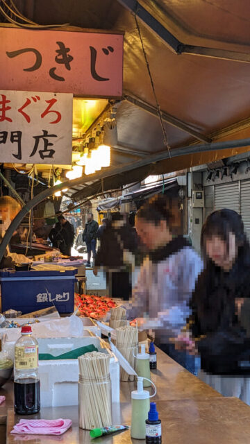 私たちはこの後、このスタイルをあちこちで目にすることになりました。築地ではスタンダードなようです。